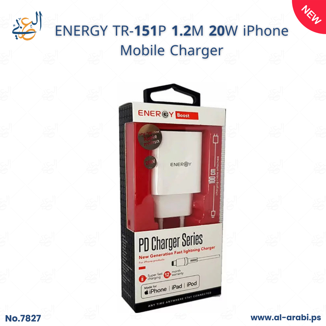 شاحن موبايل ايفون ENERGY TR-151P 1.2M 20W