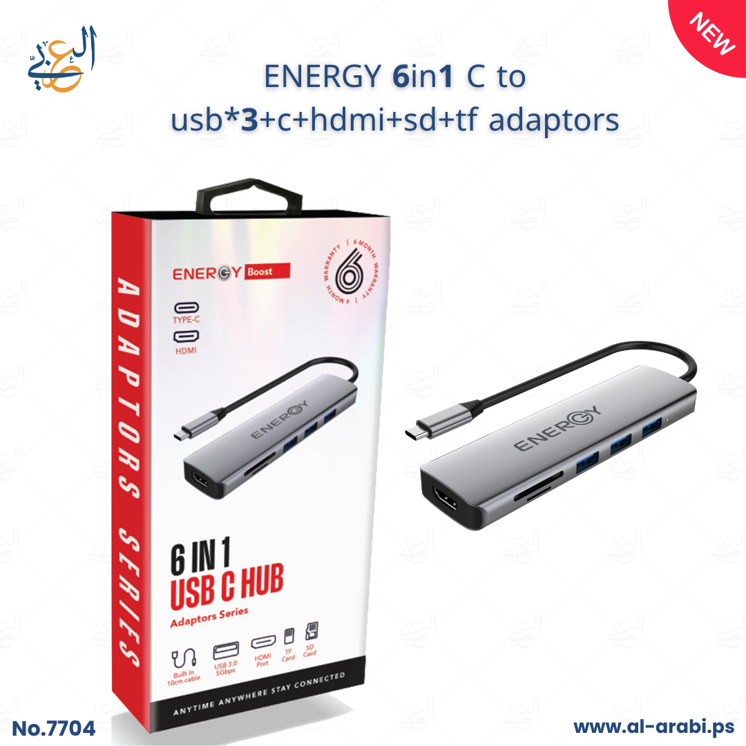 تحويلة ENERGY 6in1 C to usb*3+c+hdmi+sd+tf