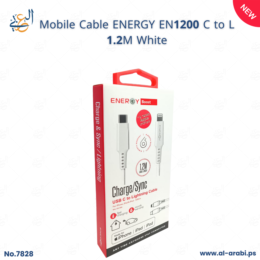 ENERGY EN1200 C to L 1.2M White Mobile Cable